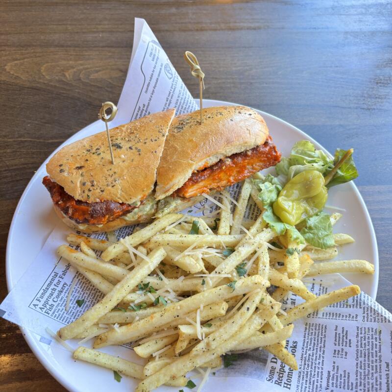Served with Italian Fries topped with Parmesan, Cole Slaw, or Signature Salad.